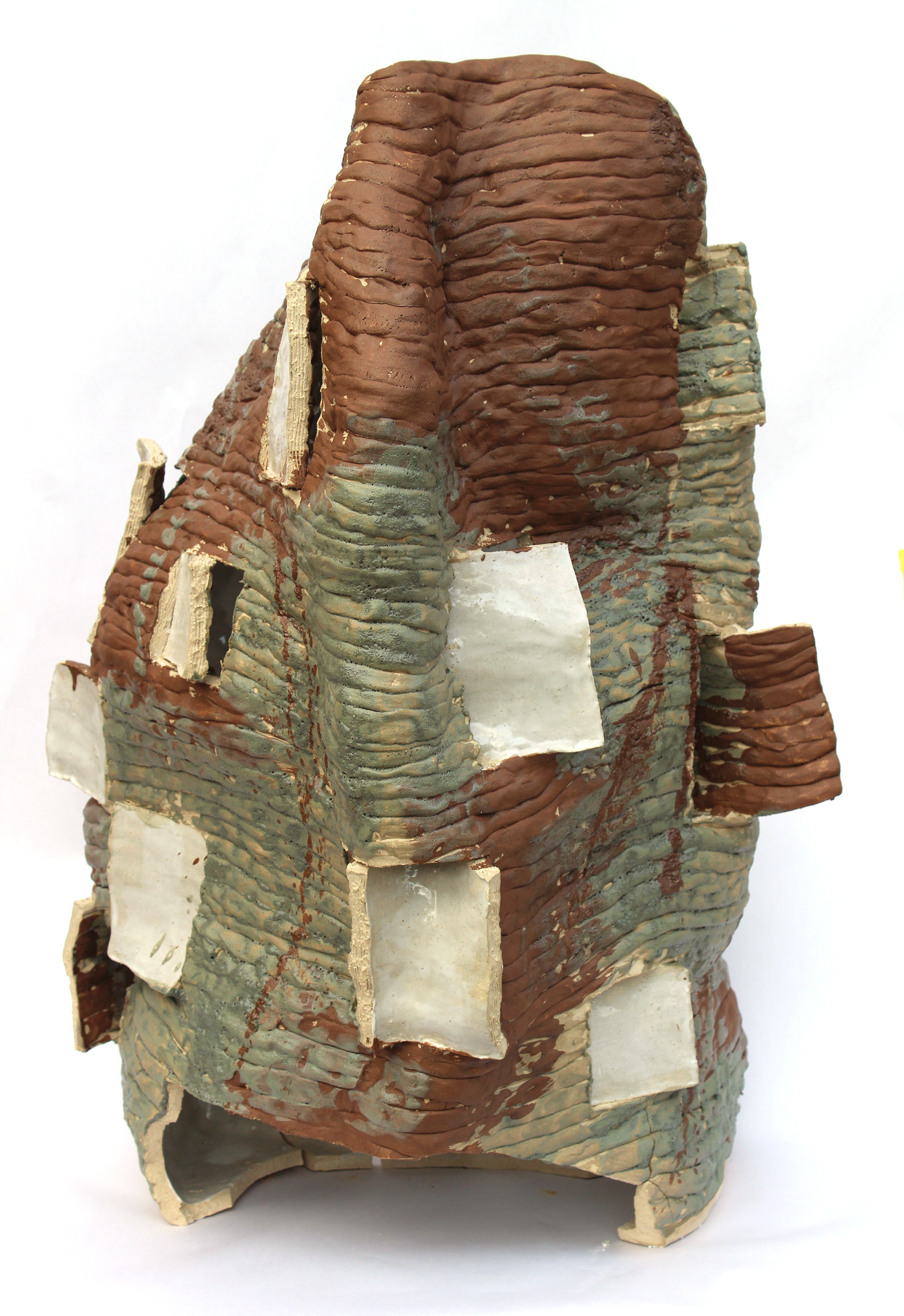 30 x 20 x 17" coil-built sculpture glazed with glaze waste.