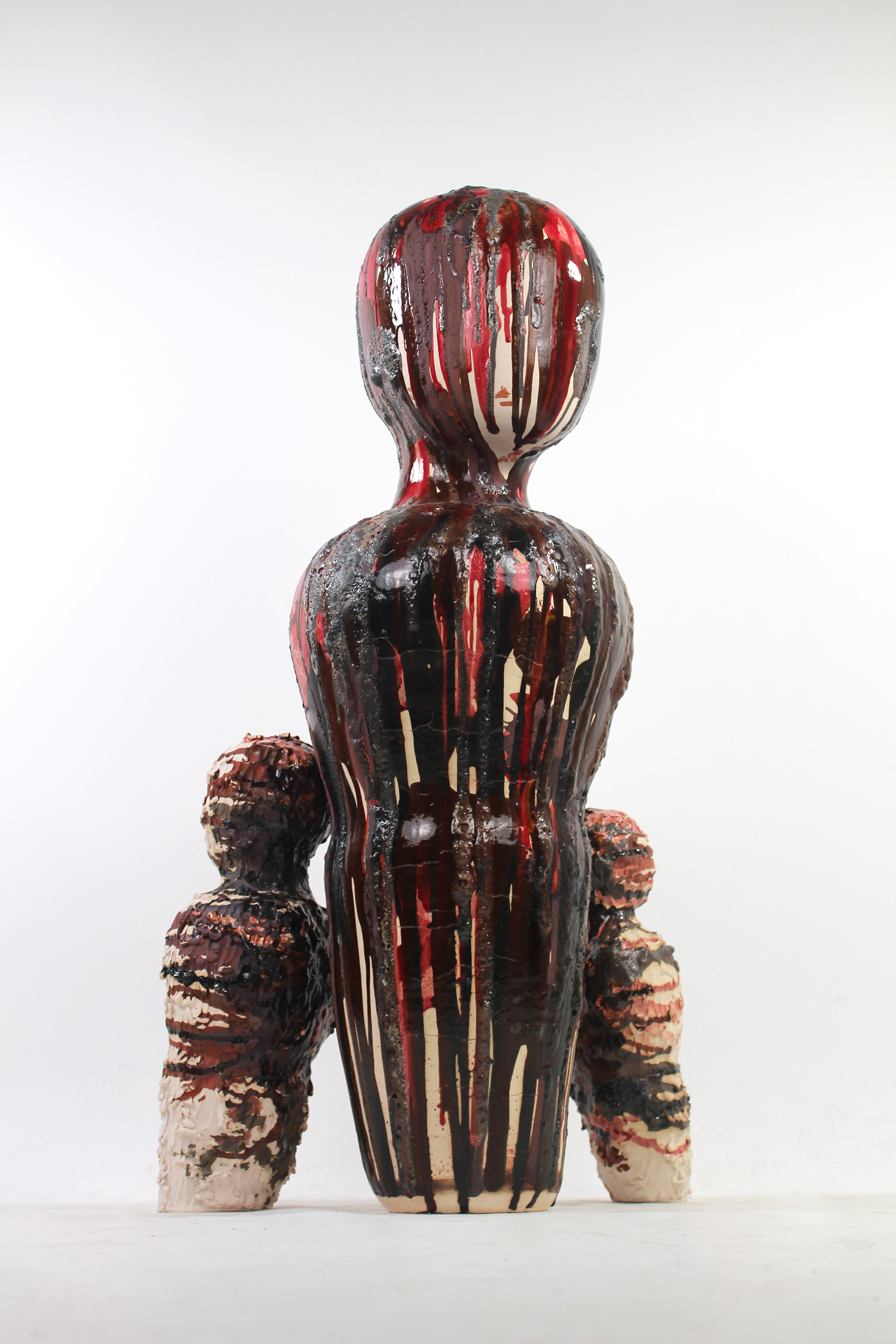 Largest figure 39 x 14 x 14," glazed stoneware, 2023