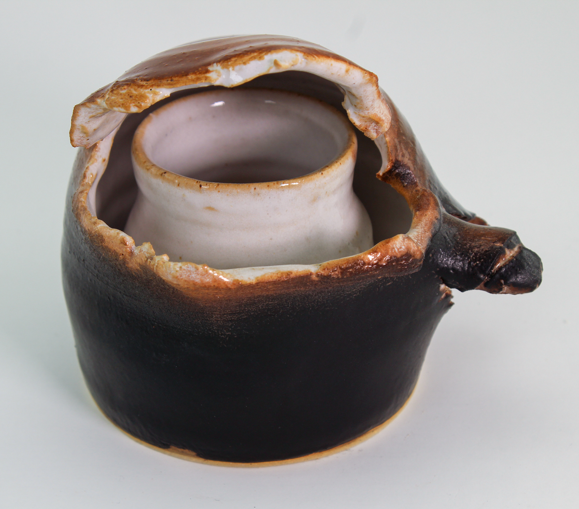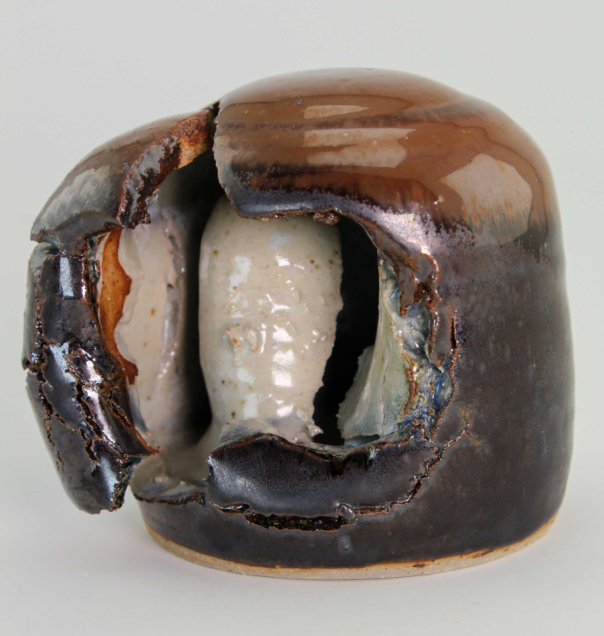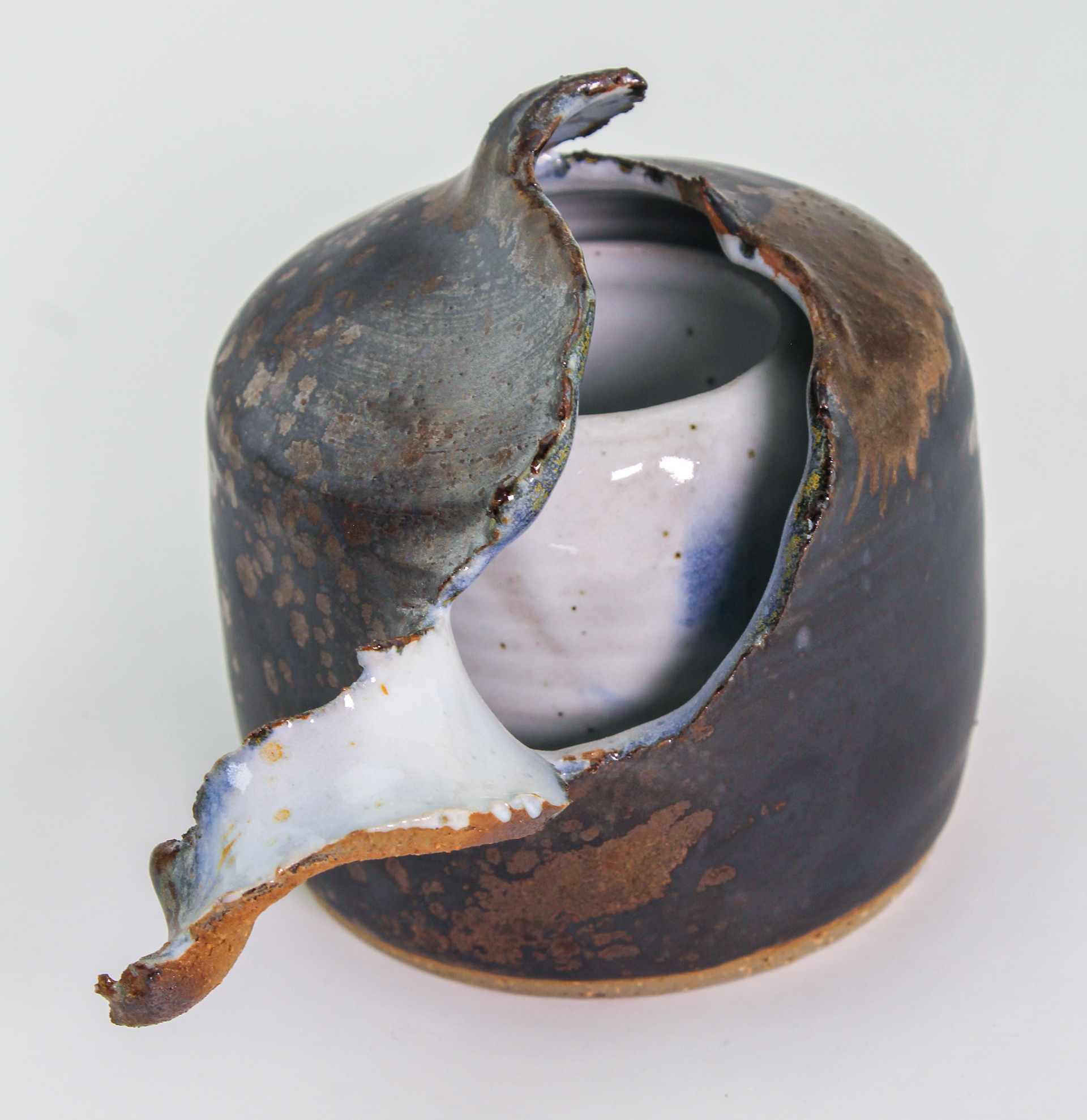 These thrown and altered double-walled forms are an exploration of visualizing the feeling of trying to (re)discover your identity after a traumatic childhood and adolescence spent hiding every aspect of yourself.
