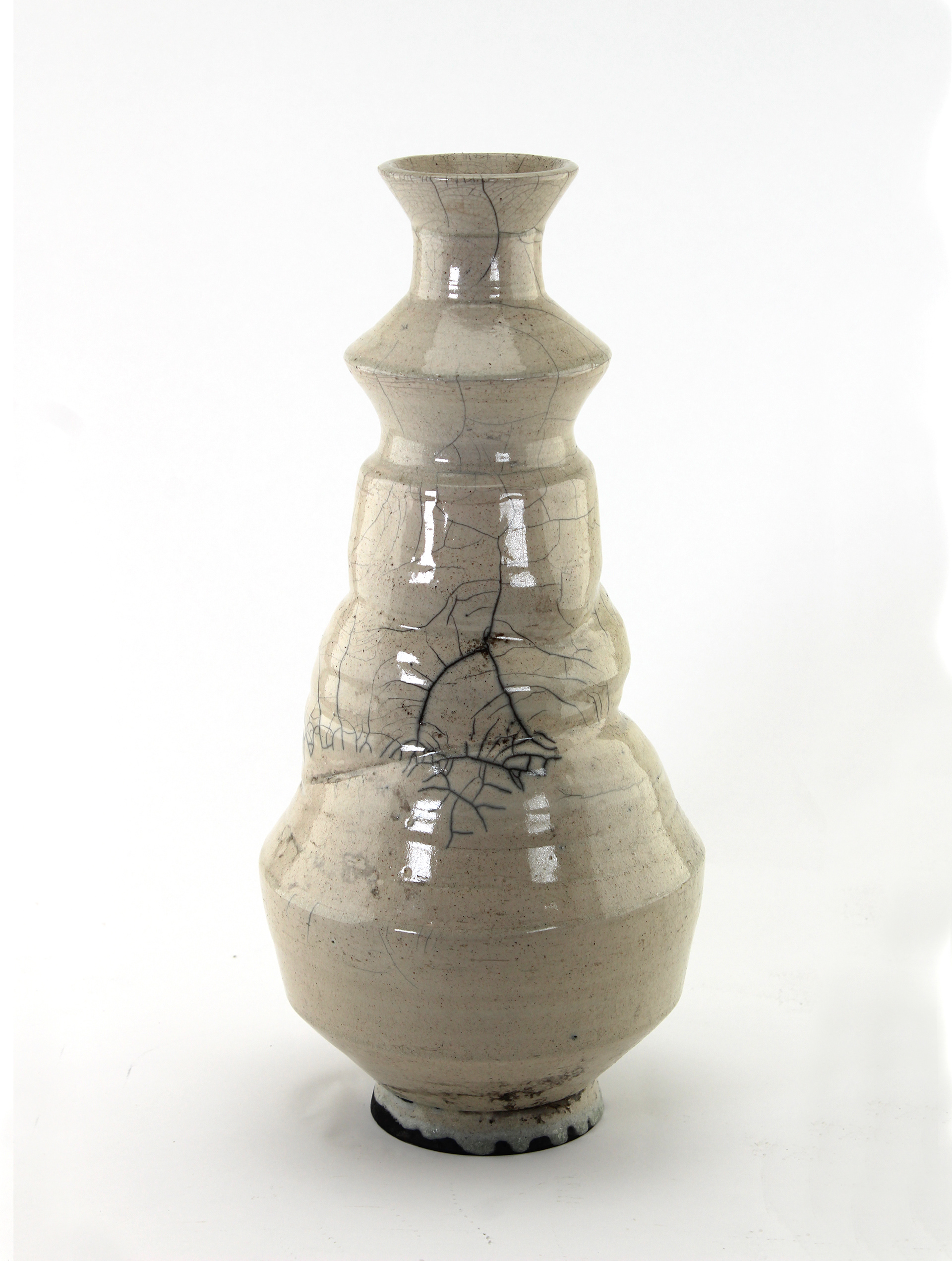 17 x 8 x 8" Wheel-thrown, altered, and raku fired.